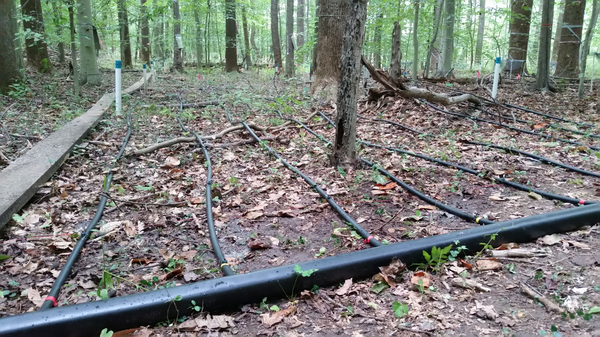 網友Smithsonian Environmental Research Center第二次為時隔一年,團隊以同樣成分水噴灑土壤,使土壤飽和時間長達20小時,後來發現鬱金香楊樹從土壤吸水的速度變慢,可能是預警訊號,但森林看起來仍沒有受影響。