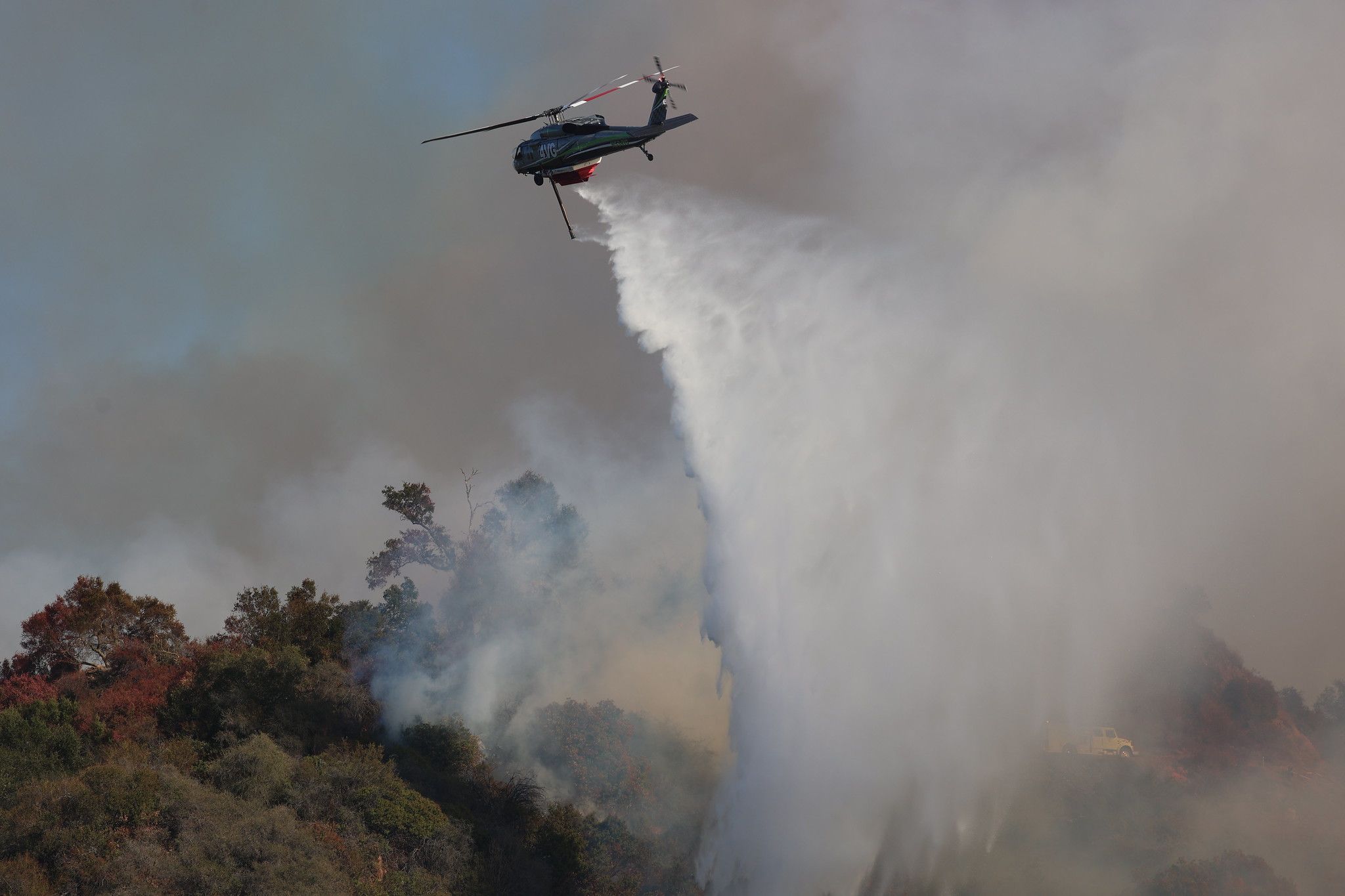 洛杉磯消防隊出動直升機撲滅野火。