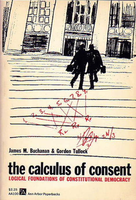在接下來的幾年間,布坎南與杜洛克兩人合著了《同意的計算》(Calculus of Consent)一書,對當時的經濟學來說跨出了一大步。一如該書副標「立憲民主的邏輯基礎」所示,這本書著墨於政治理論,幾乎沒有在討論標準的經濟問題。他們的重點放在政治程序上,認為政治人物應該要被視為理性的普通人,他們也會以自己的利益作為決策的最高準則(也就是贏得下一次選舉)。兩人合力在書中重新打造「共同財貨」和「公眾福利」的定義,他們將這些說成是煙霧彈,用來掩護試圖利用政府中飽私囊的官員和與他們勾結的人。布坎南和杜洛克認為,只要去研究任何一個社會中的憲法,你就能發現其中有許多誘因和限制,形塑了所謂的人民公僕的行為以及他們口中為公眾利益著想的政策與其結果。
