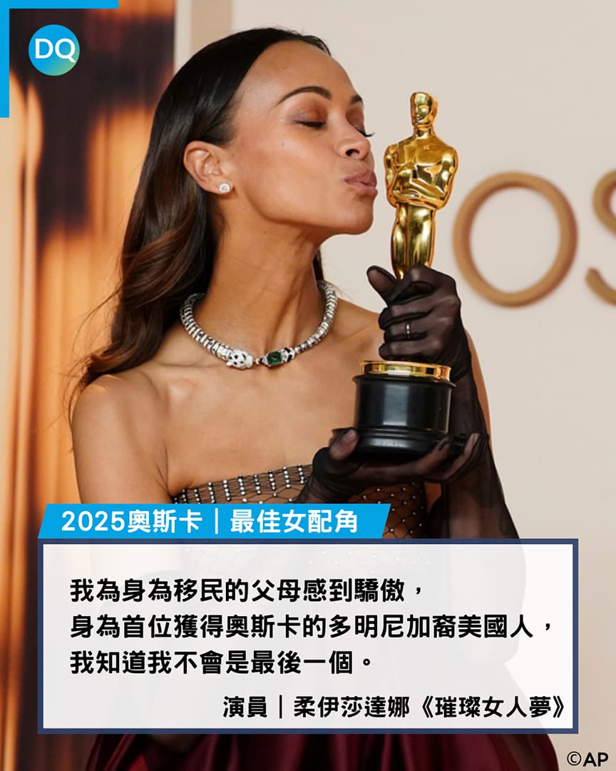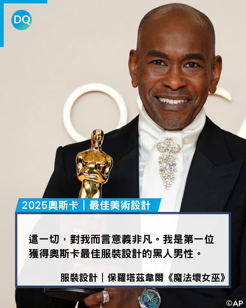 《璀璨女人夢》(Emilia Pérez)的柔伊莎達娜(Zoe Saldaña),不只是首位獲得奧斯卡獎的多明尼加裔美國人,同時也是歷史上第三位獲得最佳女配角的拉丁裔演員。《魔法壞女巫》(Wicked)的保羅塔茲韋爾(Paul Tazewell),則是史上首位獲最佳造型設計的黑人男性。