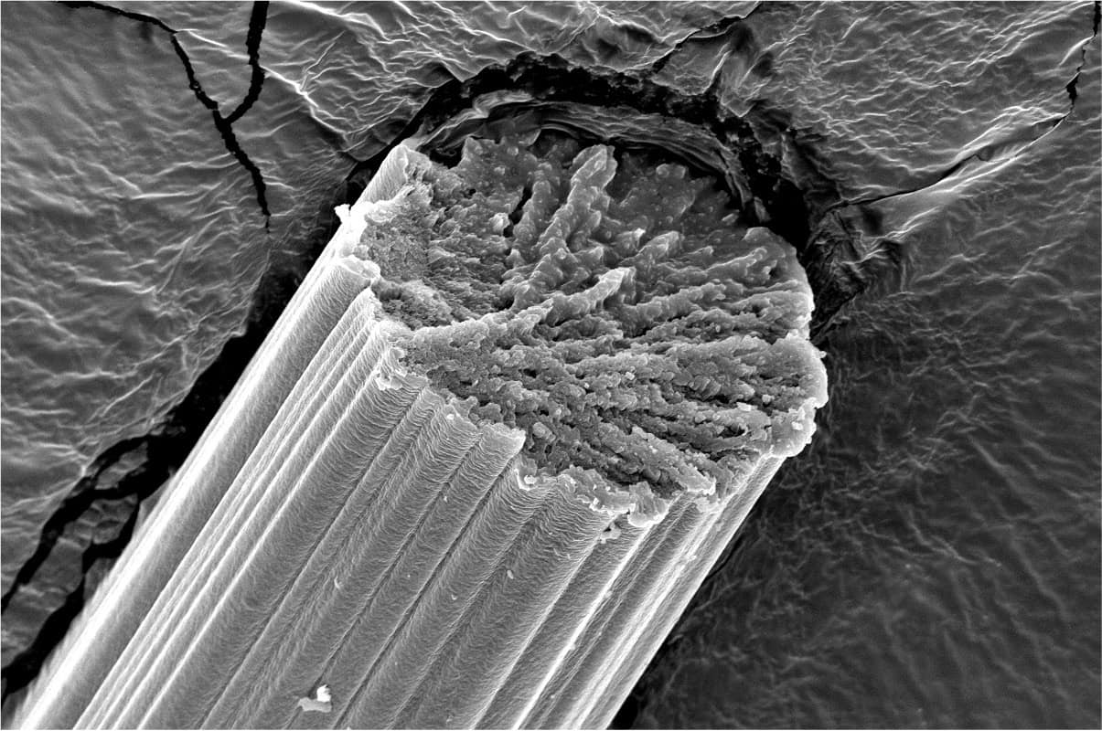 最新研究揭示,蜘蛛絲初始時是液態的,從吐絲管排出後透過拉伸而凝固。在微觀層面上,這種拉伸使原本呈球狀團的蛋白質「排成一線」,同時增加了蛋白質鏈間的氫鍵數量。Graham表示:「未經拉伸的纖維機械性能相當弱,但當它被拉伸到初始長度六倍時,就變得極為強韌。」