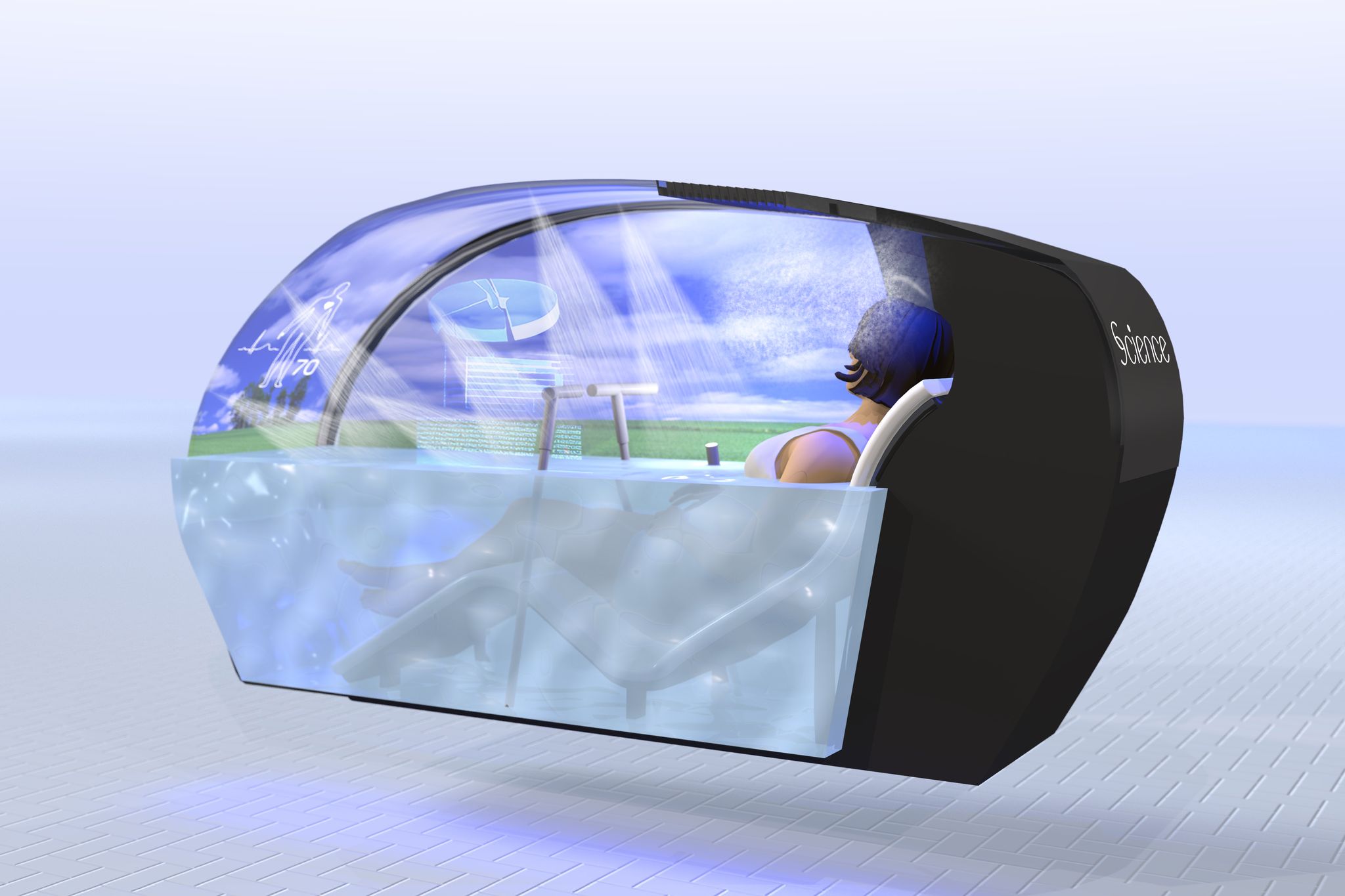 過了半世紀,一家名為Science Co.的公司把這個概念升級,推出「未來人類洗澡機」。Science Co. 總部位於日本大阪,是一家專門製造蓮蓬頭的製造商。該公司計劃在大阪府・大阪市政府營運的大阪醫療保健館(Osaka Healthcare Pavilion)展出這台充滿了未來感的機器。