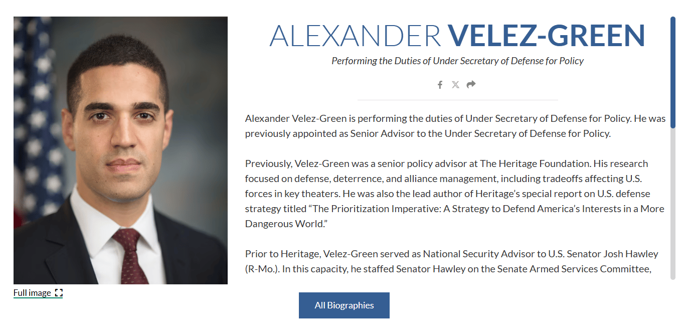 美國傳統基金會並未對此報導作出回應,但該報告的共同作者之一亞歷山大.維萊茲-格林(Alexander Velez-Green)目前擔任國防部的最高政策官員,進一步強化了該智庫對政策制定的影響力。