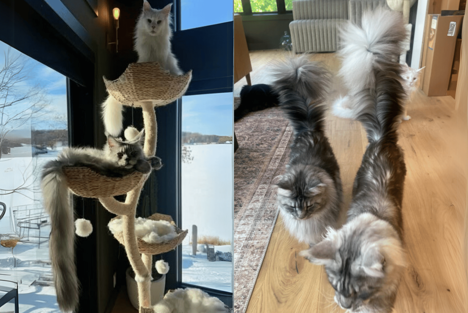 為什麼帕斯利的尾巴這麼長呢?原因在於緬因貓是家貓中體型最大的品種,擁有適應寒冷天氣的特性,因此牠們天生擁有濃密的毛,並以蓬鬆的大尾巴而聞名。這不僅可以當作座墊,還能用來保暖。除此之外,緬因貓的腳掌也有豐厚的掌毛(Well-tufted),有助於牠們在積雪上行走,甚至有些緬因貓的腳趾頭多達六個。