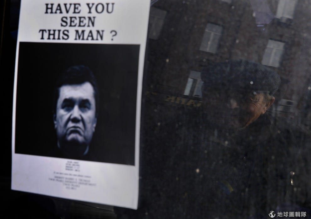 被推翻的烏克蘭總統亞努科維奇的海報出現在烏克蘭境內,他在2月底逃離基輔後,被國際以釀成多人死亡的罪名通緝。