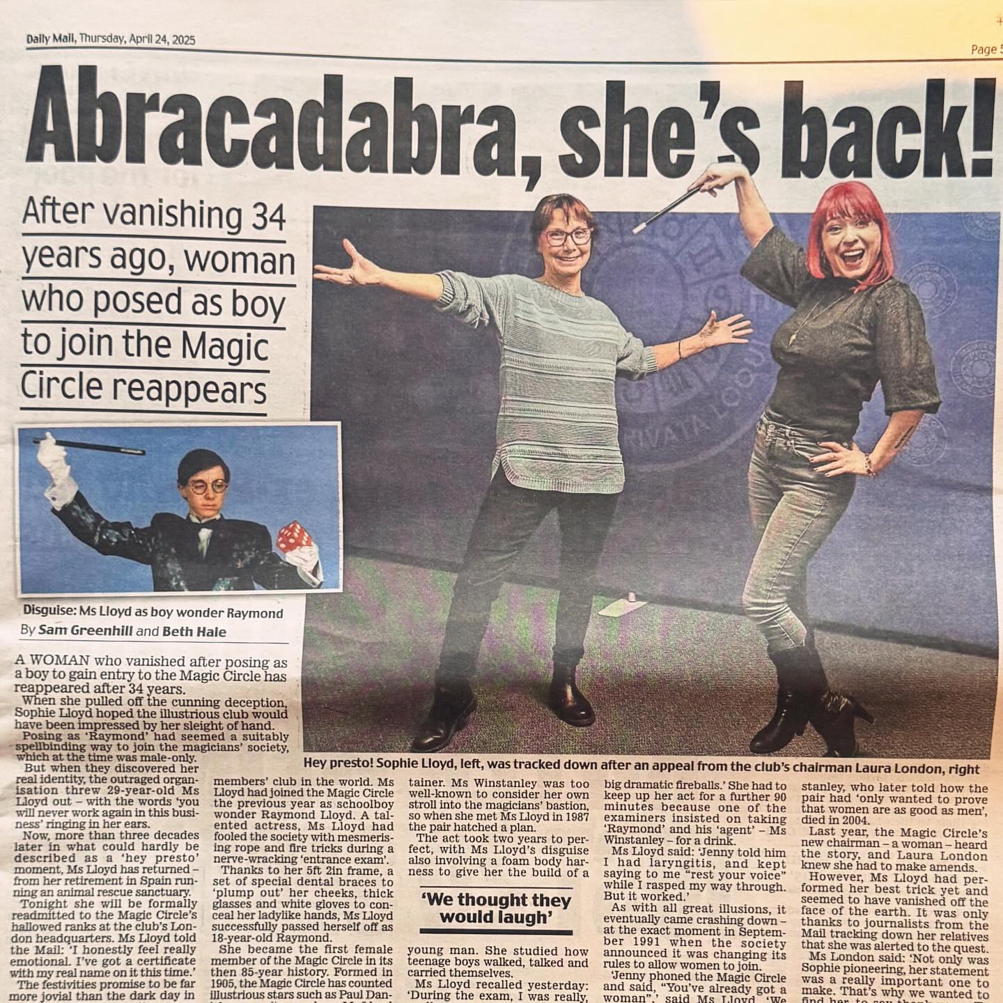1991年3月,蘇菲以「雷蒙・勞伊德」的名義向魔術圈報名入會考試,珍妮則扮演雷蒙的經紀人。為了降低風險,他們選擇邀請考官前往一間工人俱樂部,在200名觀眾與3名考官的見證下進行20分鐘的表演。「我們也可以選擇到魔術圈總部考核,」蘇菲提到,「但我想要在大眾面前表演,這樣比較好玩,也比較不容易被識破。」