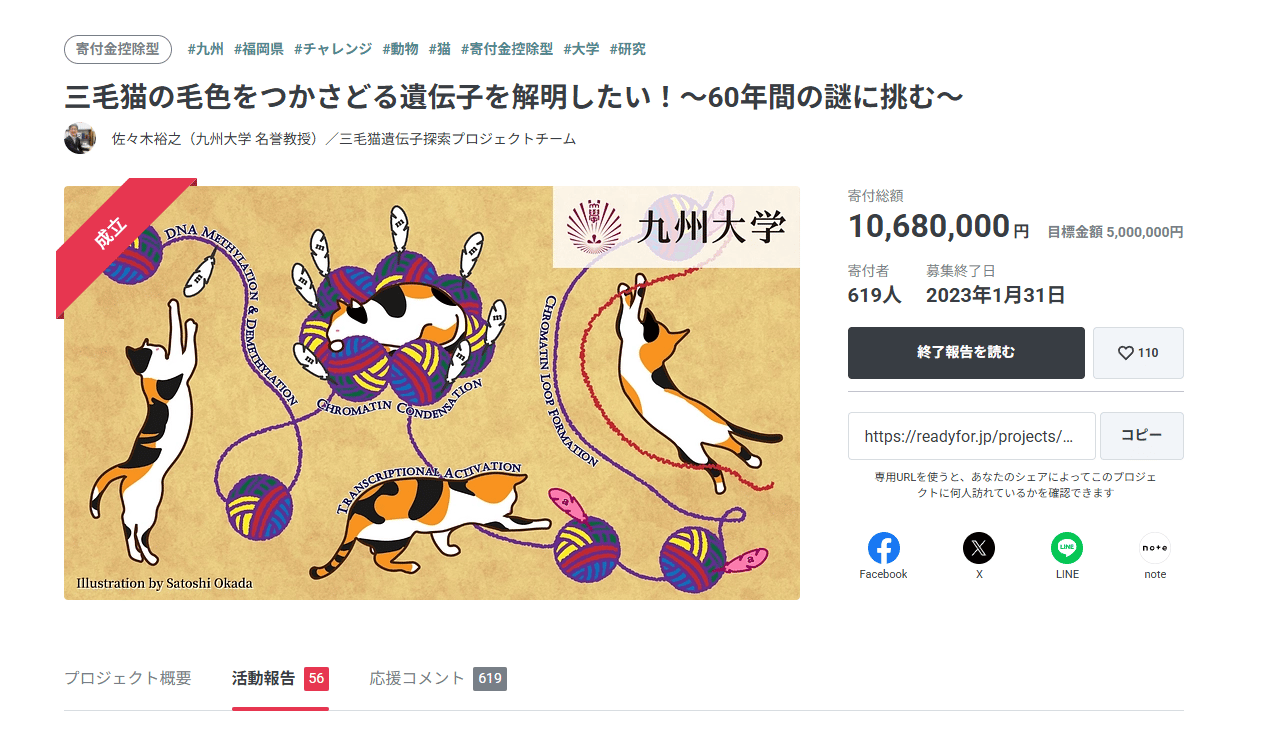 佐佐木裕之與研究團隊為了進行研究,透過募資平台向貓奴夥伴們籌募經費。