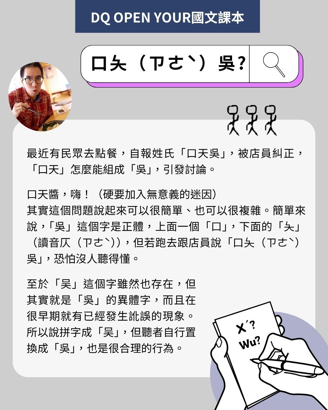 【DQ Open Your國文課本】「口天吳」、「口夨吳」還是「口大吳」?從點餐風波談「吳」的多重面貌