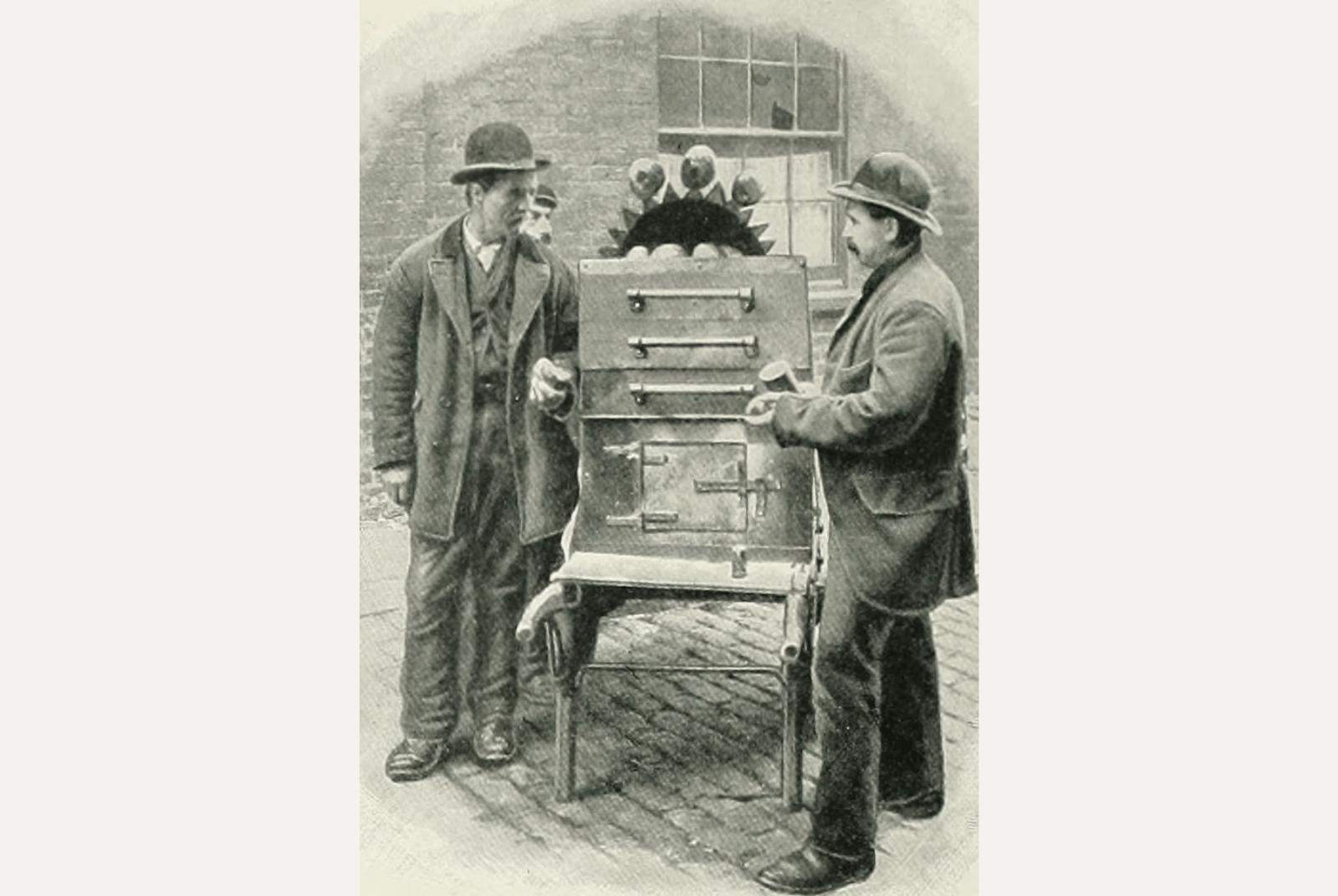 網友 Internet Archive Book Images對於那些一有錢就想填飽肚子,卻缺乏基本烹飪設備,如壺、平底鍋甚至盤子的窮人而言,他們並不指望在家裡擺上一頓豐盛的菜餚,而是選擇在隨處可買到食物的地方購餐,並吃下所有能獲得的食物。