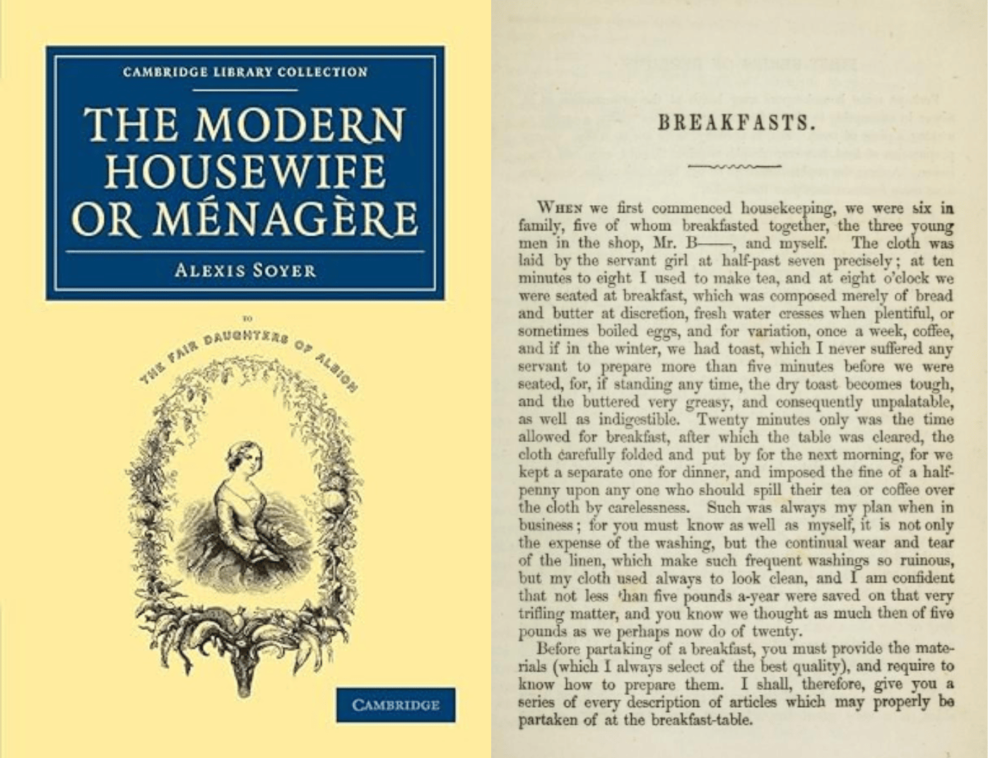 網友《The Modern Housewife or Ménagère》索耶的書如此風靡,以至於幽默週刊《笨拙》(Punch)在1849年9月15日刊登了一幅諷刺漫畫,畫中兩位已婚婦女——瑪莉A與伊麗莎B——正抱怨,自從這本書問世以來,她們的丈夫對家庭料理的要求越來越高。