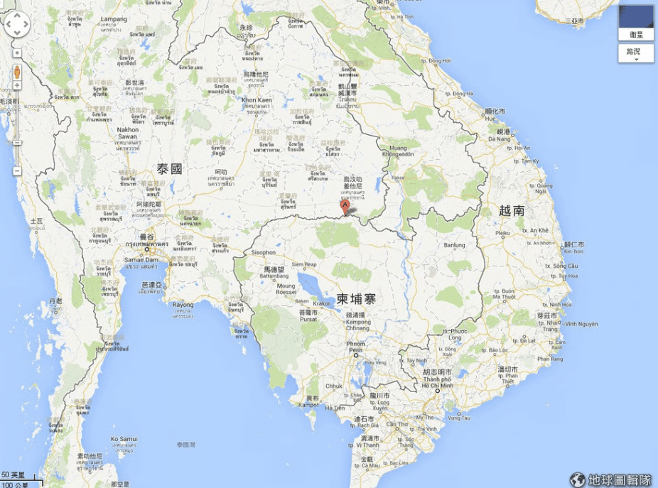 圖片中的標記點A,就是柏威夏古寺的所在地點。