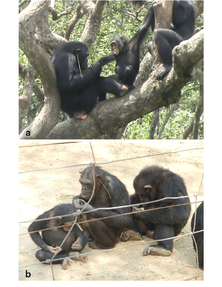 因此數年後,當這些工作人員接手照顧第二群黑猩猩,才會間接促使這群黑猩猩也發展出「耳掛草行為」甚至是進階變成「直腸插草行為」(grass-in-rectum behavior)。
