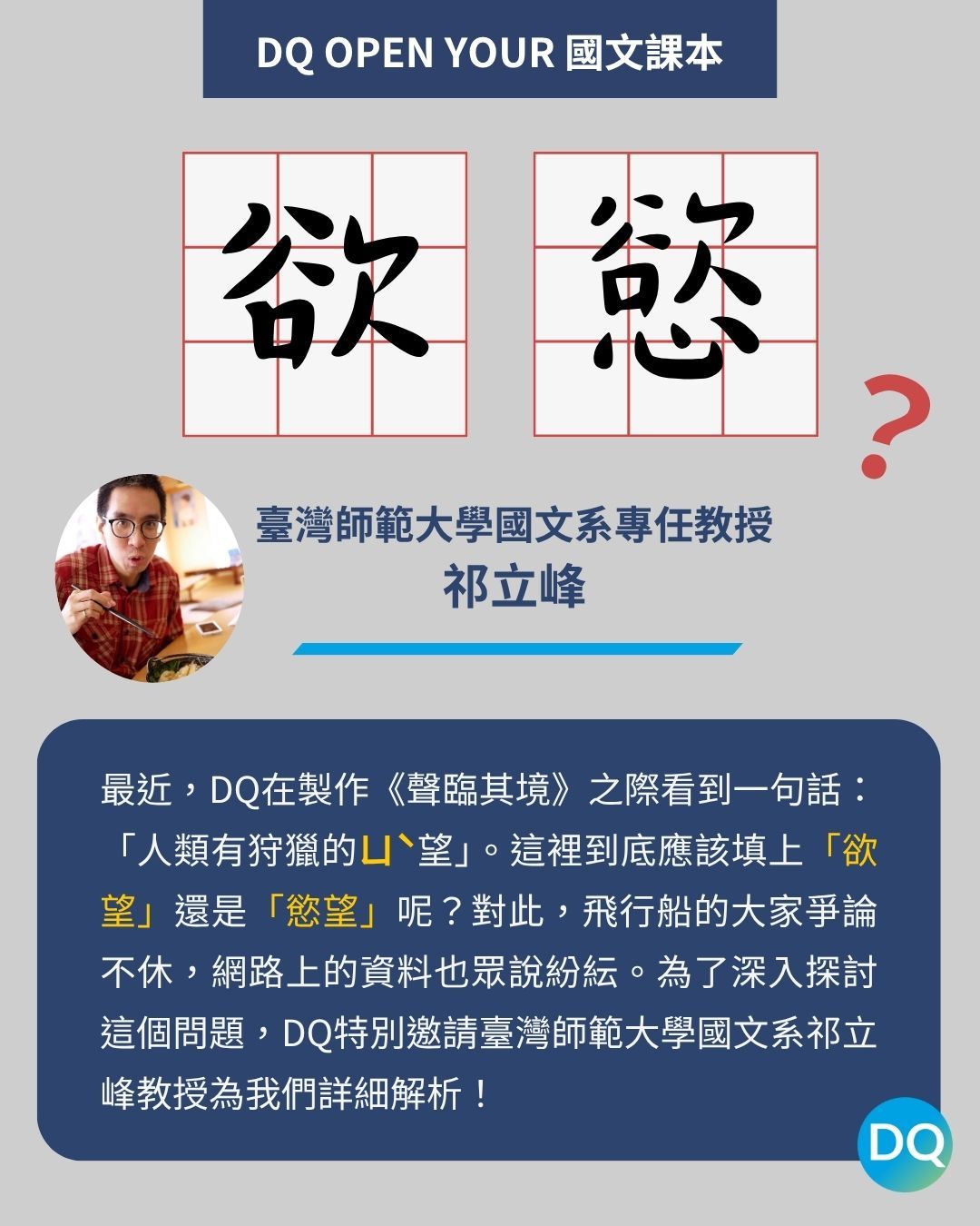 【DQ Open Your 國文課本】是「慾望」還是「欲望」?我都唸ㄩˋ望