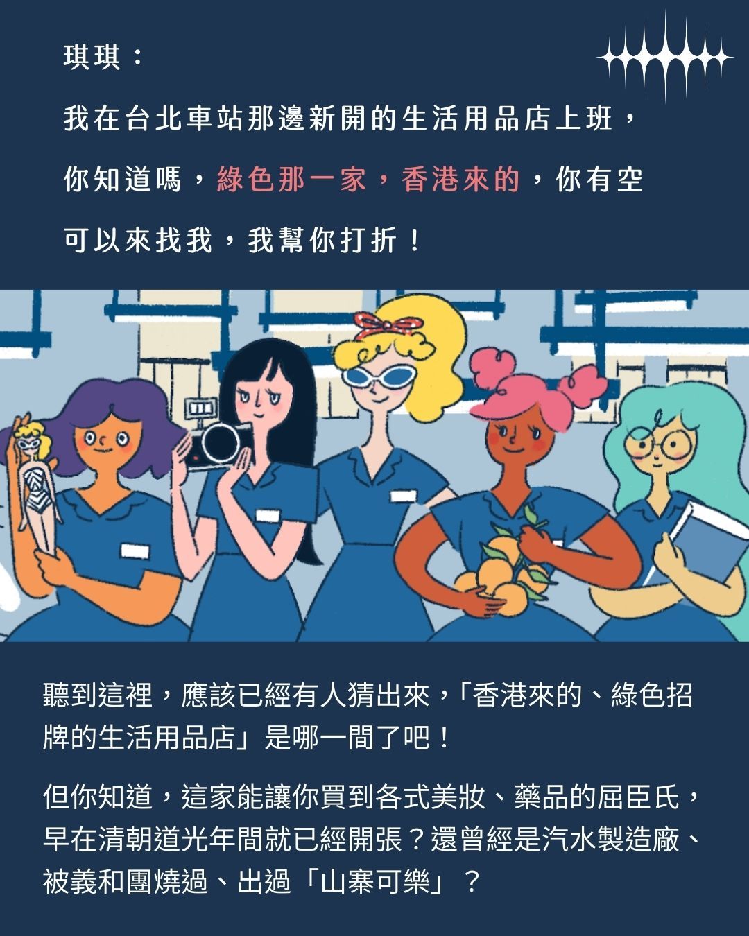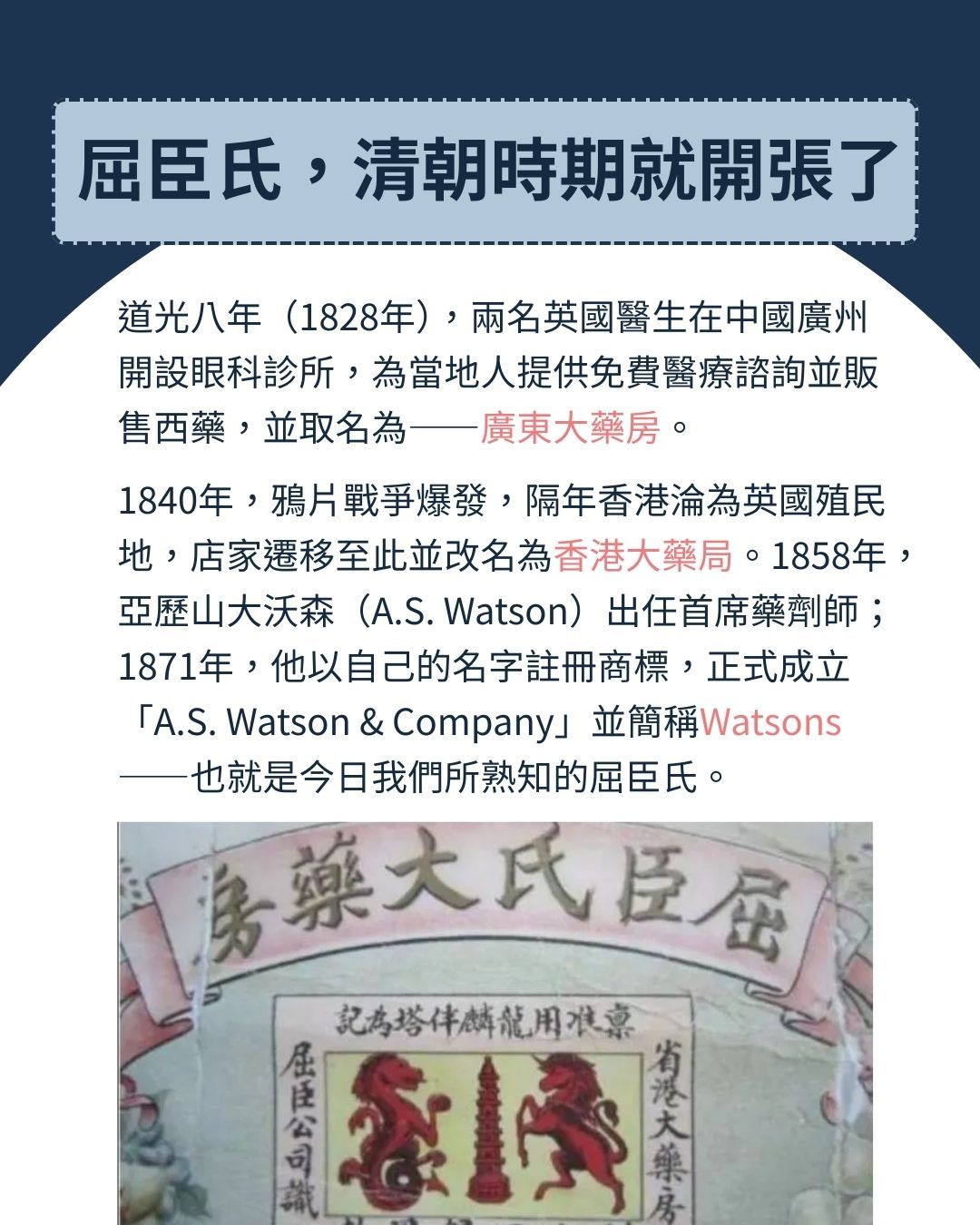 你知道嗎,在台灣隨處可見,能買到各式美妝、藥品的屈臣氏,早在清朝道光年間就已經開業了!它曾是眼科診所、也是汽水工廠,還曾在義和團運動中被當成外資過,甚至推出過自家品牌的「山寨可樂」。