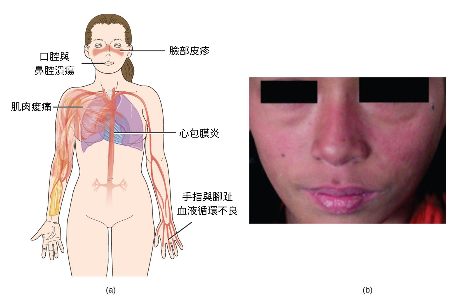 罹患全身性紅斑狼瘡可能出現的症狀。