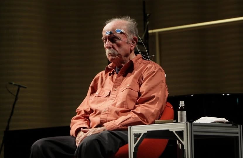 ▲1965年,Alvin Lucier戴上腦電圖儀,用自己的腦波「指揮」打擊樂器,演奏《Music for Solo Performer》,挑戰了「演奏者」與「樂器」的界限。