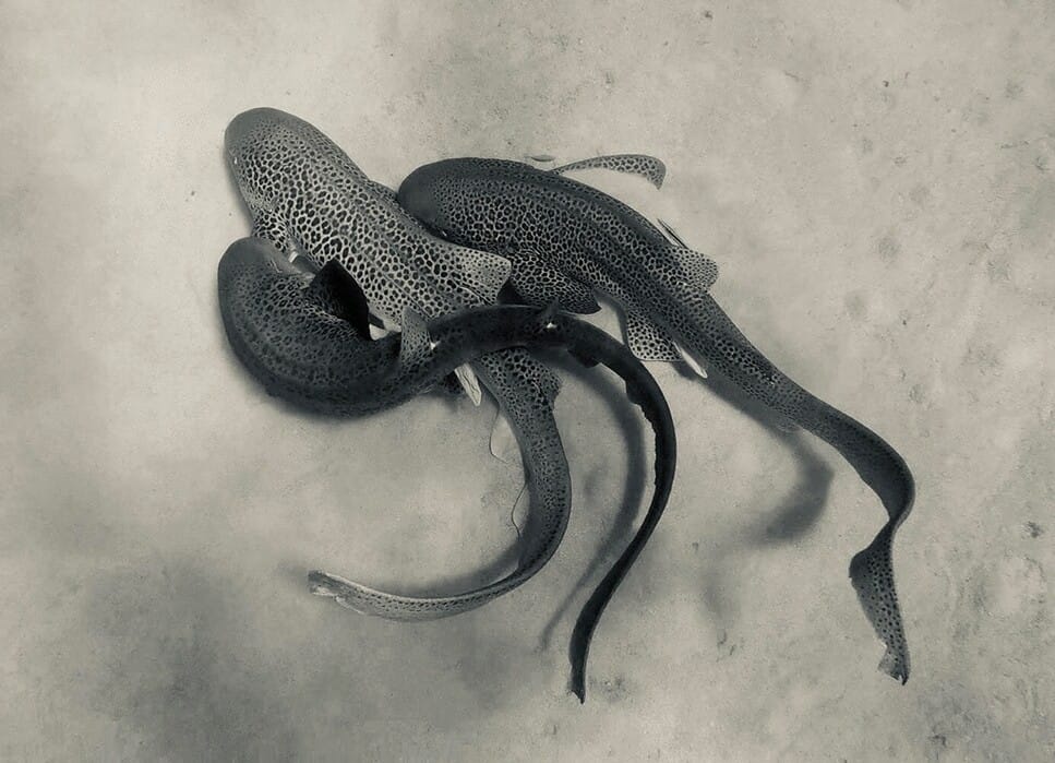 就在去年,澳洲一名教授幸運在野外目擊並記錄下整段豹紋鯊的交配過程,而且更出人意料之外的是,這還是一場由一隻雌鯊、兩隻雄鯊一起進行的「三人行」。