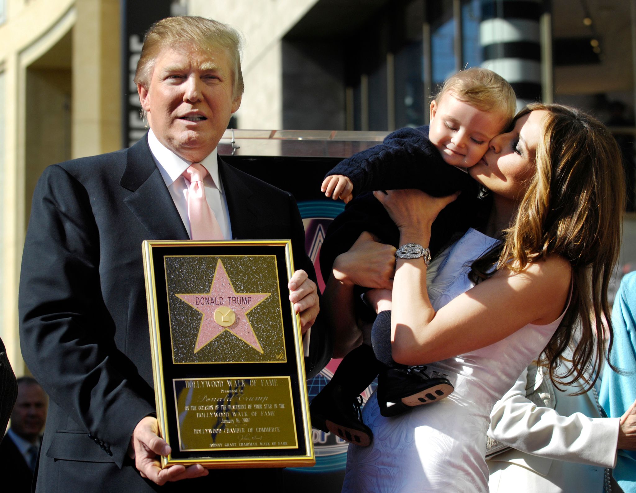 圖為2007年,川普獲得「好萊塢星光大道」一星標章。多年來,這顆「川普之星」多次遭到民眾破壞,也引發是否該摘除的爭議。