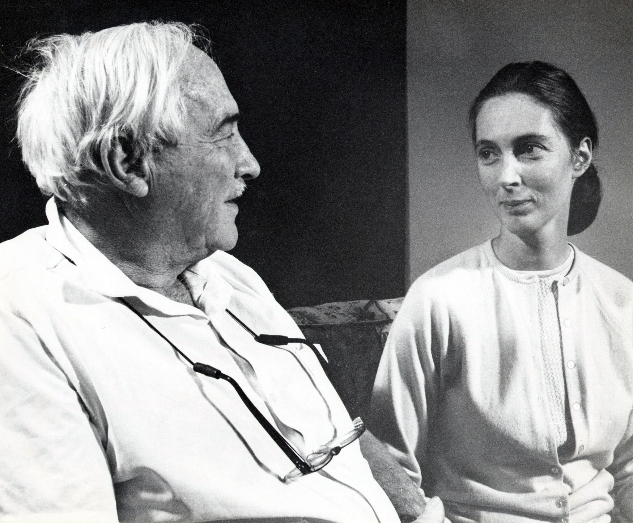 1982 年,珍古德在一場於芝加哥舉辦的演講前,先瀏覽當天的幻燈片。