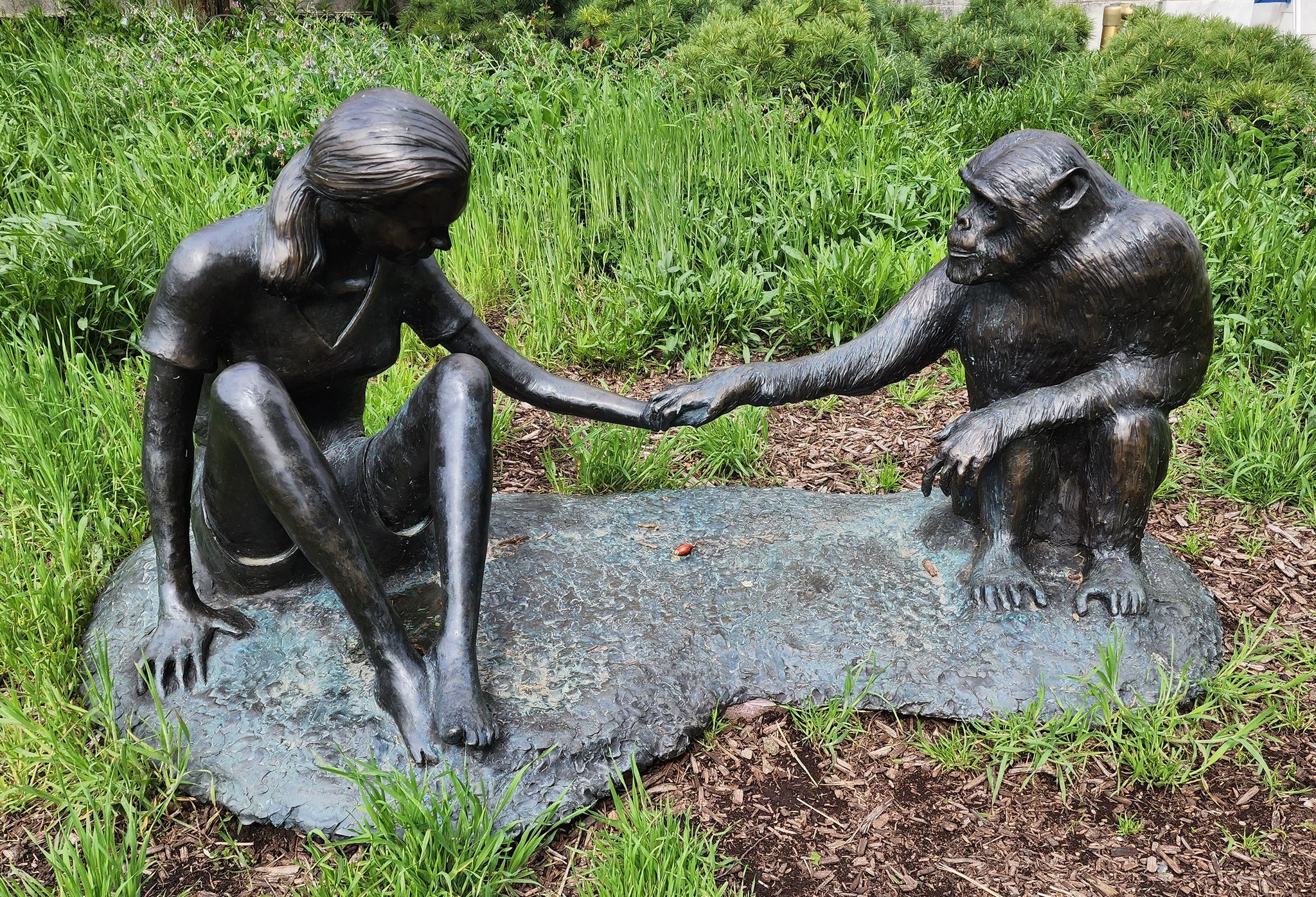 芝加哥的菲爾德自然史博物館(Field Museum)外,有一尊珍古德與黑猩猩白鬍大衛的雕像。