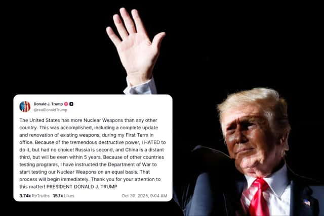 美國總統川普(Donald Trump)在前往南韓釜山與中國國家主席習近平舉行貿易談判前夕,突然在社群平台Truth Social宣布,自己已指示五角大廈「立即開始」進行美國核武測試。
