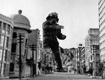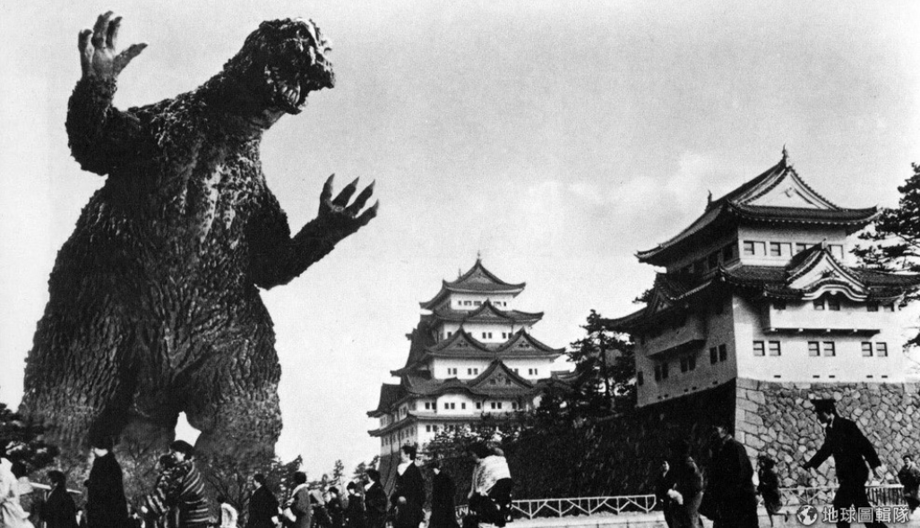 圖為 1964年《摩斯拉對哥吉拉》電影中,哥吉拉攻擊名古屋城的圖片。Photo credit: Tom Simpson