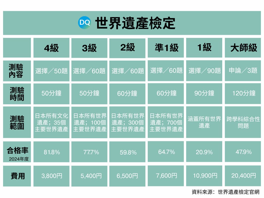 「世界遺產檢定」由日本NPO法人「世界遺產學會」主辦,且由文部科學省(教育部)擔任指導單位,是一項在日本具有公信力的權威認證。該檢定自2006年創辦至今,累積考生人數已突破40萬人。