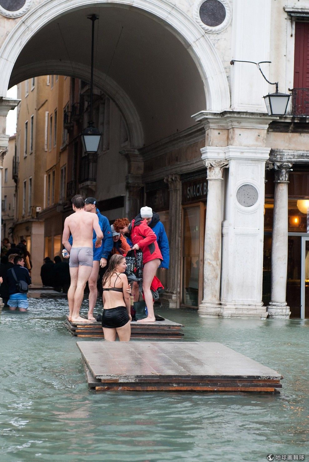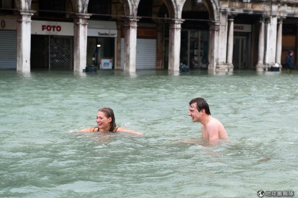 gettyimages從10月底開始,義大利的威尼斯又是一年一度的大潮,水位比海平高出103公分的狀況下,海水全淹進了城內,讓威尼斯成了「水鄉澤國」。但是呢,當地民眾全顯得很淡定,一樣外出購物,商家報攤也照常營業,連預計要開跑的馬拉松都照常舉辦。