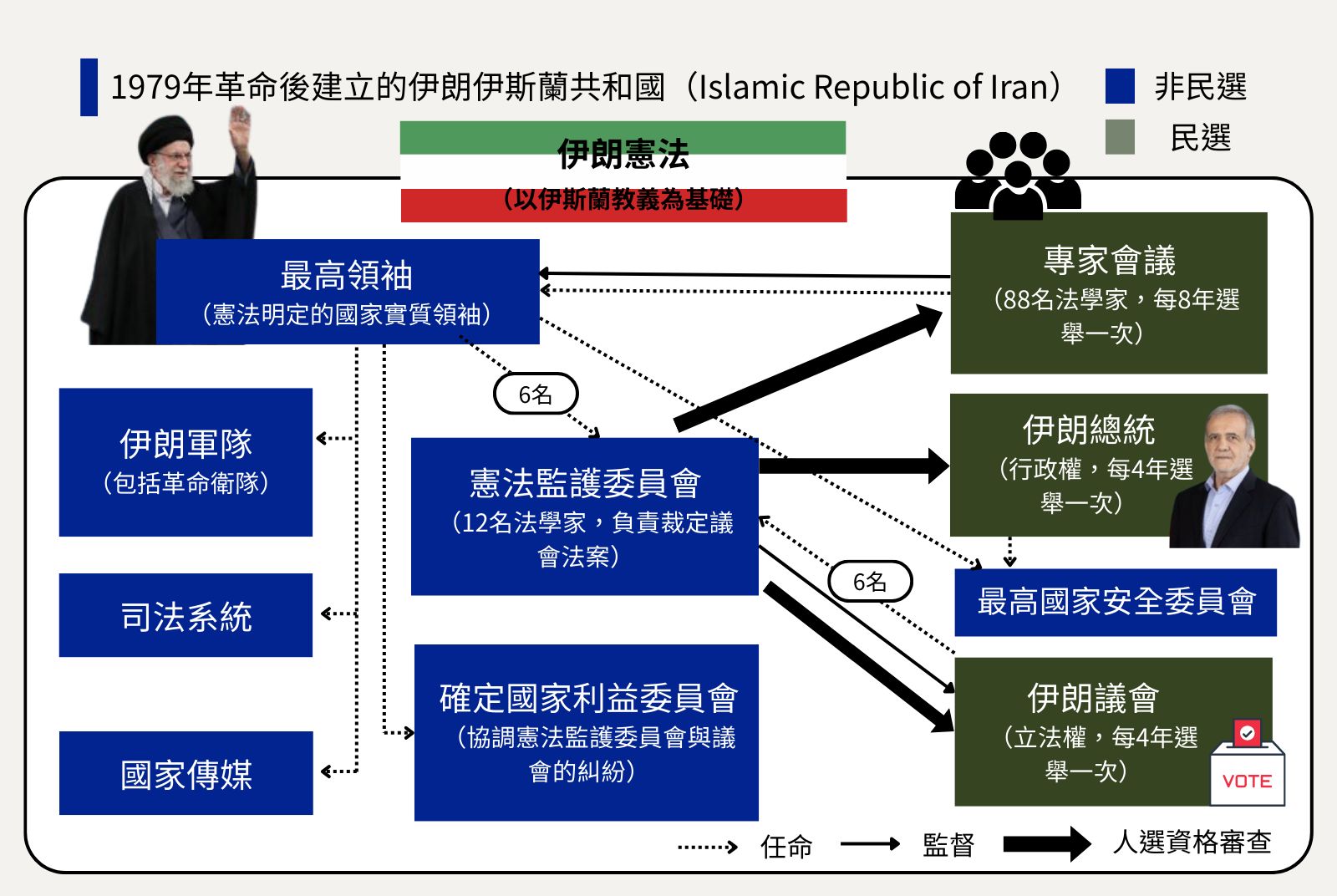 同時,伊朗政治長期存在貪腐和管理不善的問題,民選政府也曾有意推動經濟開放或擴大法治以改變現狀,但皆未成功,反而讓聽命於最高領袖的武裝部隊「伊斯蘭革命衛隊」(IRGC)進一步擴大權力,持續干預經濟。