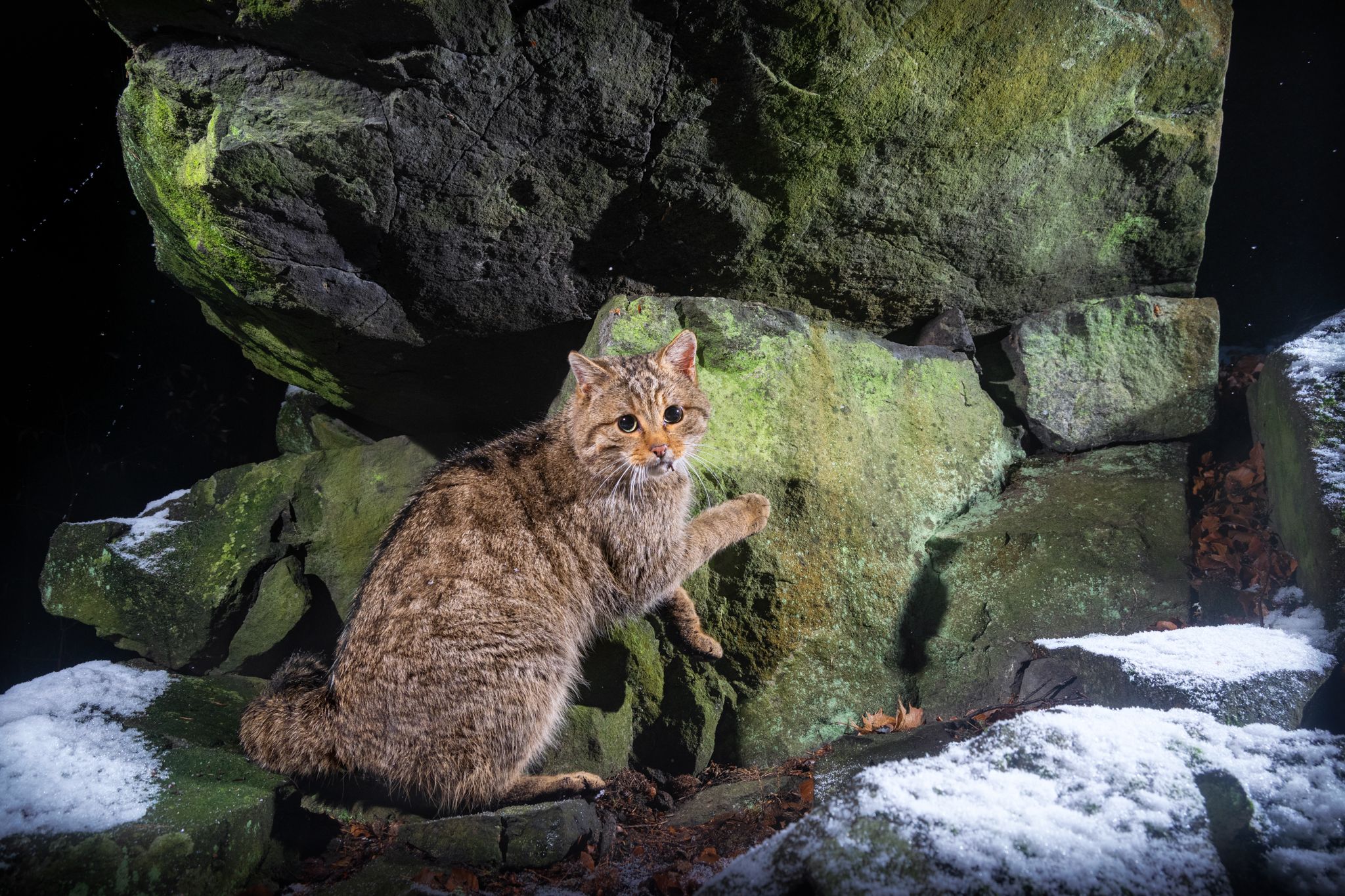 2020年,為了協助歐洲野貓的研究,野生動物攝影師切赫(Vladimír Čech Jr)進入到杜波夫山脈,在層層積雪和崎嶇地形中架設相機,更結合了感應器和遙控裝置,就是為了拍下歐洲野貓到訪的那一瞬間。他形容這就像是「在森林中央搭建一座隱形攝影棚」,和看不見的身影周旋。在他的不懈努力下,終於成功捕捉到捷克境內首批高清的歐洲野貓畫面。