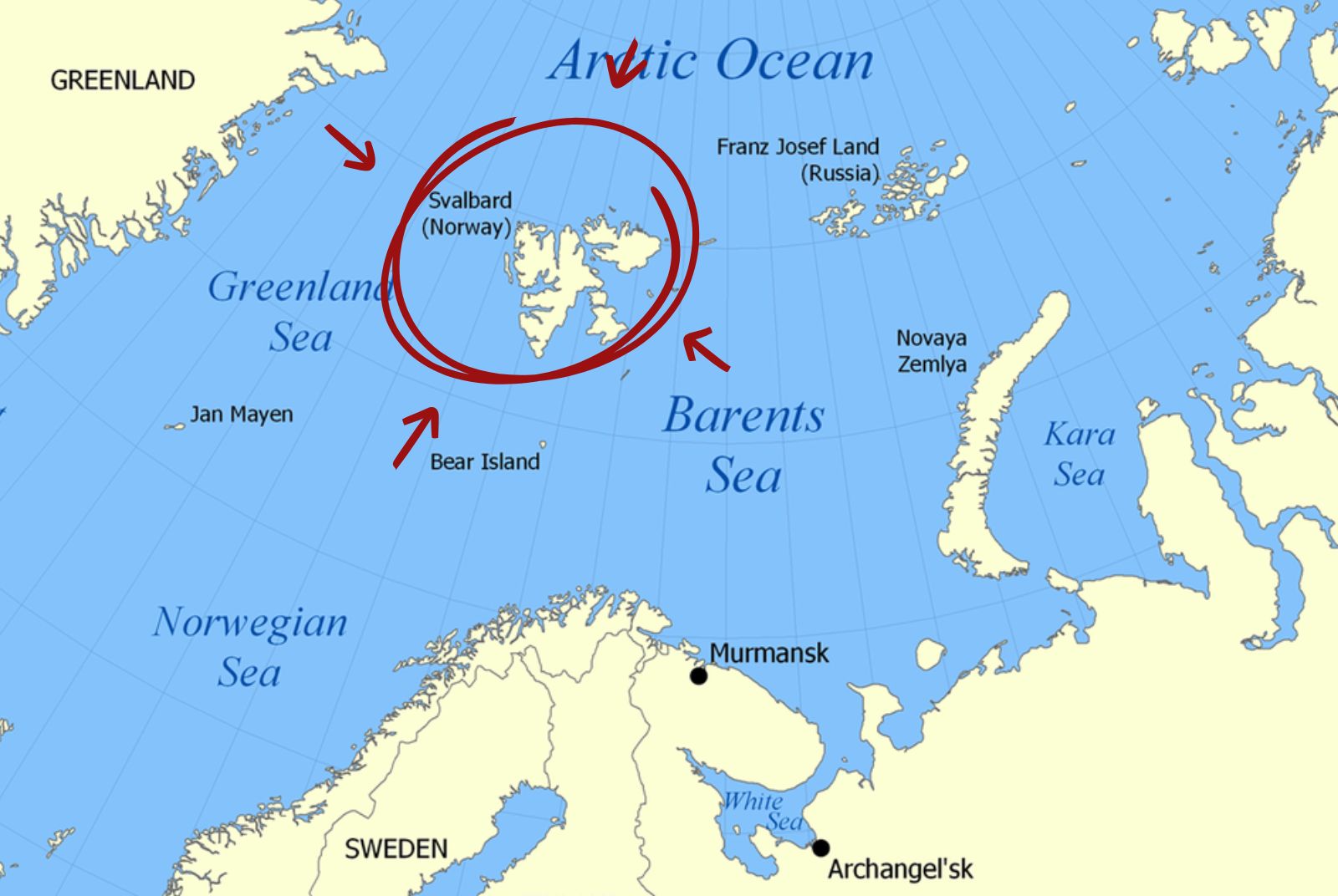 斯巴瓦群島(Svalbard)與巴倫支海(Barents Sea)位置。