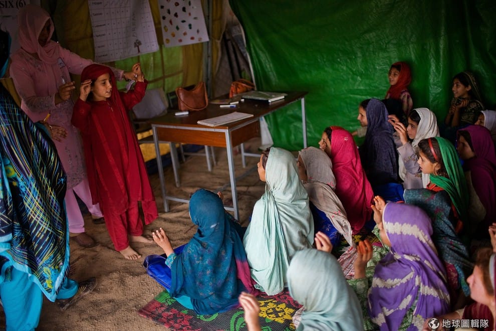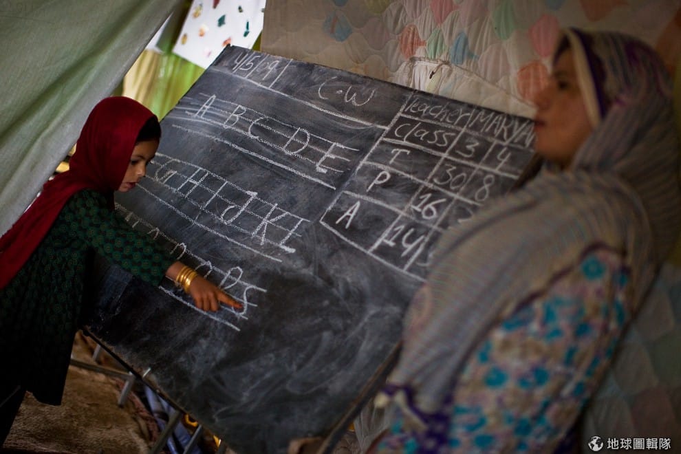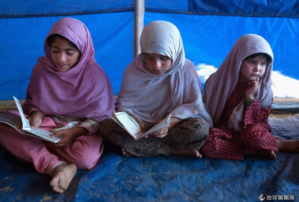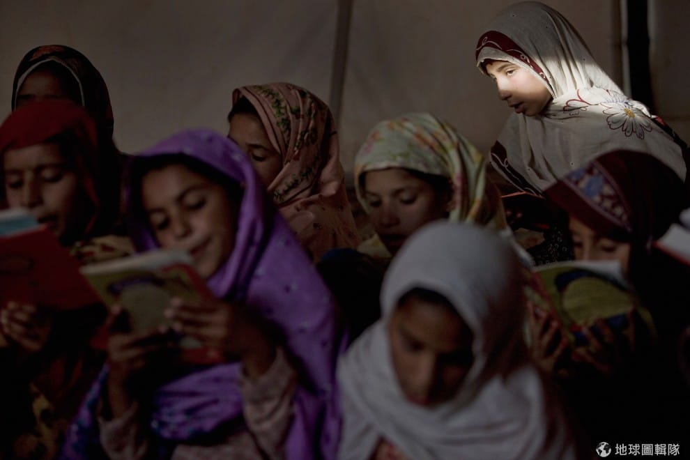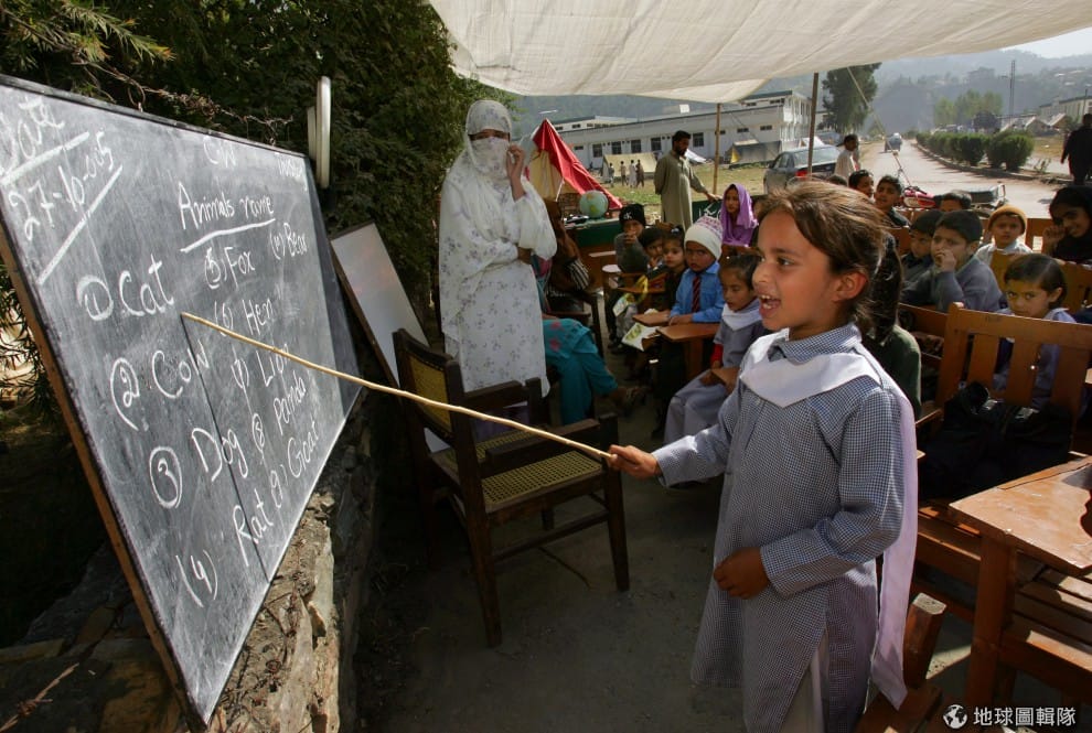 gettyimages照片中是巴基斯坦的小女生,她們因為地震失去的教室,就著太陽的光芒在烈日下唸書。圖片來源:Paula Bronstein/Getty Images