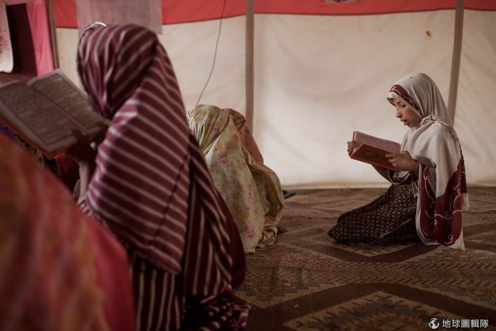 gettyimages在聯合國兒童基金會設立的庇護所中,女孩們專心的上課。這邊可以看看她們的服裝,光是頭巾的部分就有各式各樣的顏色,也有女生戴上漂亮的髮箍。圖片來源:Daniel Berehulak/Getty Images