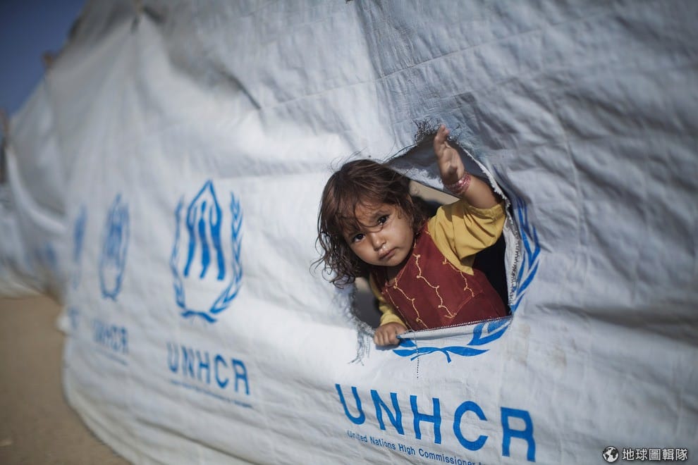巴基斯坦當地的小女孩,因為內戰不斷的關係失去家園,只能先跟爸爸媽媽待在聯合國兒童基金會設置的避難所中找尋暫時的庇護。圖片來源:Daniel Berehulak/Getty Images