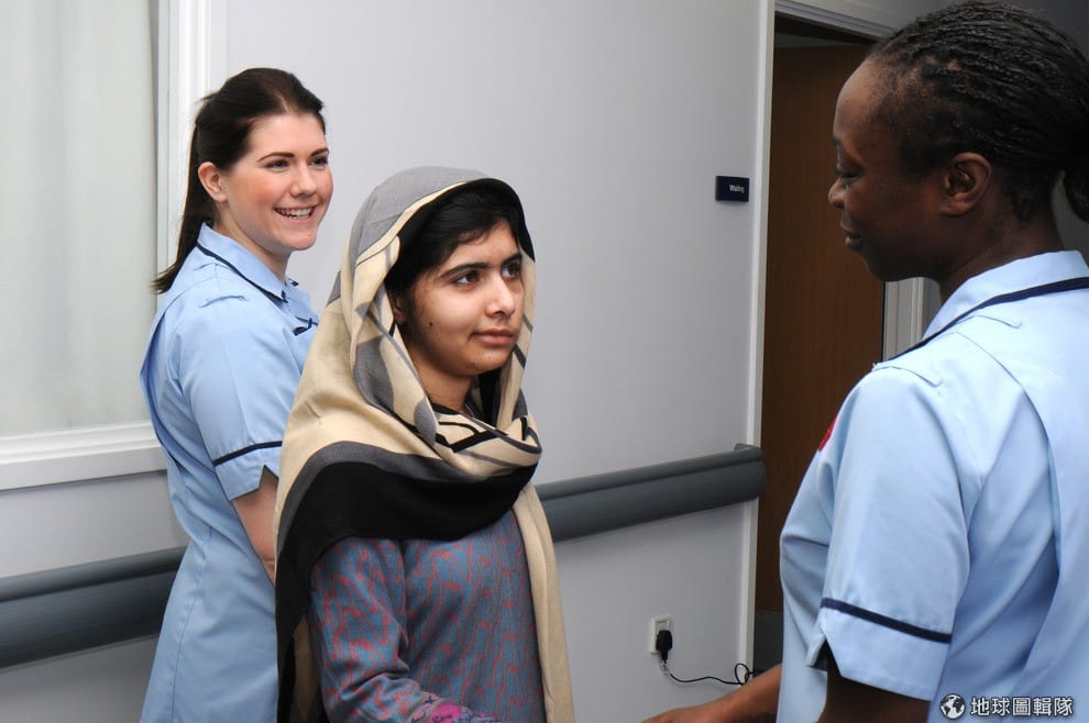 塔利班激進分子欲置之死地的槍擊,讓大家一度失了信心,以為會失去馬拉拉。幸好她堅強的鬥志讓她戰勝重傷,奇蹟似地復原!圖片來源:Queen Elizabeth Hospital Via Getty Images