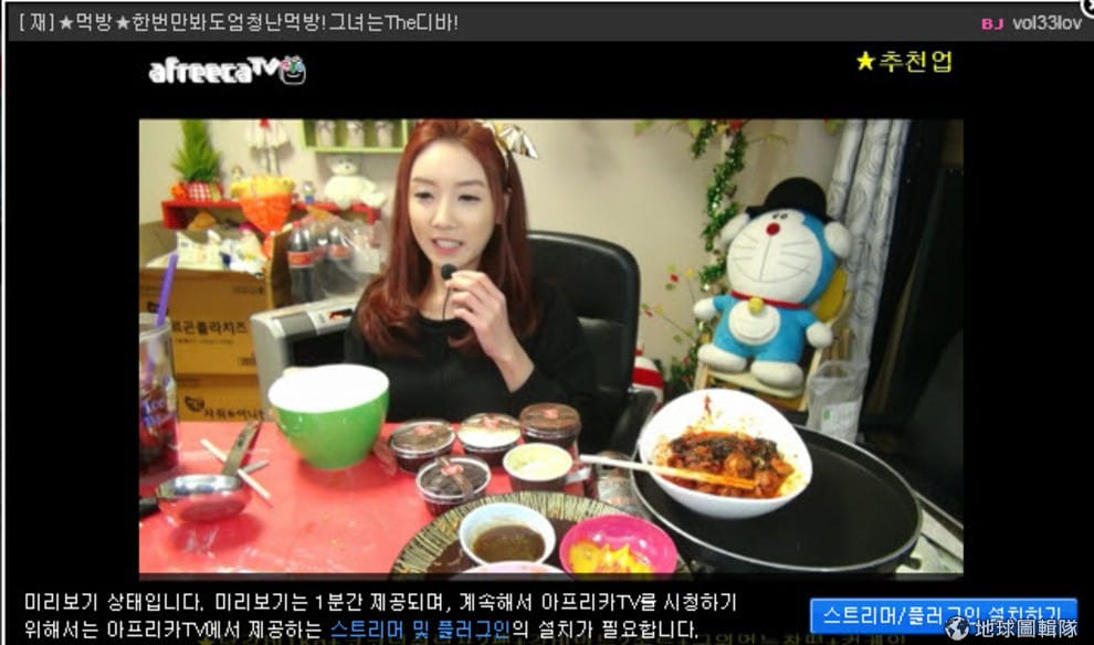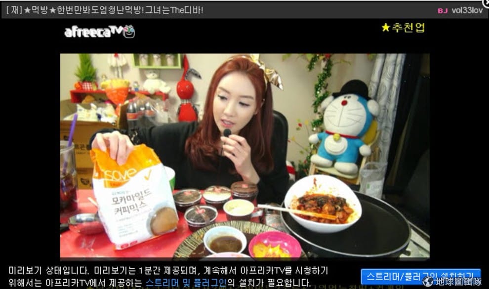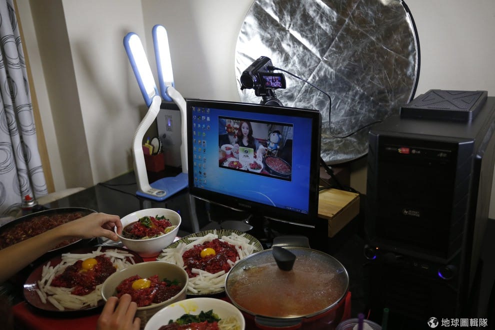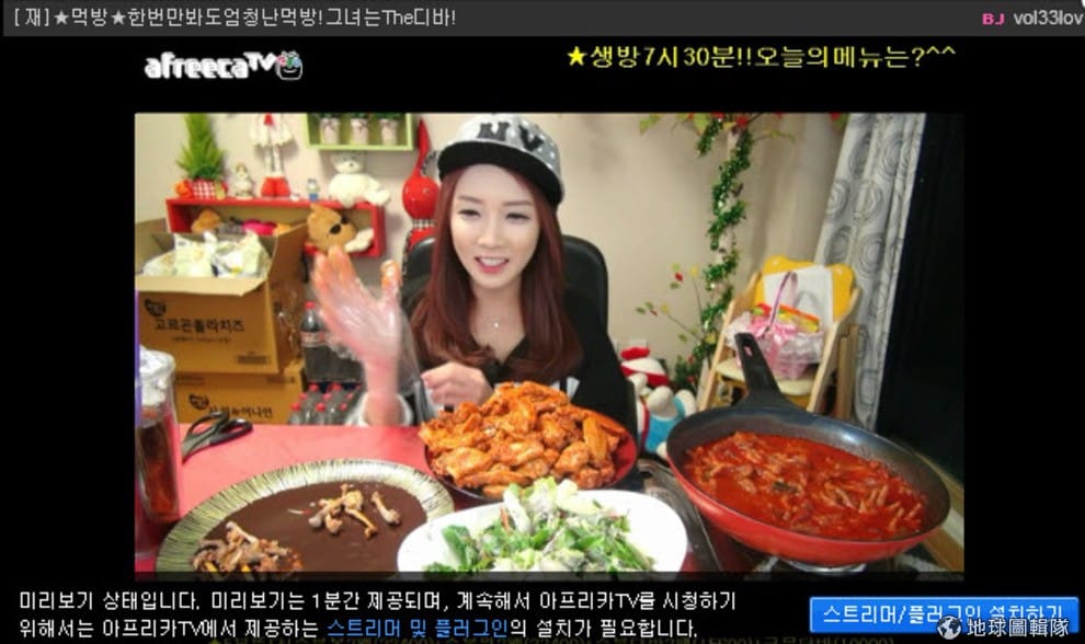 「看人吃飯」正席捲南韓網路界,當你進到名叫「吃播」(muk-bang,먹방)的頻道時,就會看到有人邊直播、邊在你眼前吃下各種多樣豐富的料理。最棒的是,你還可以跟他線上即時對談。