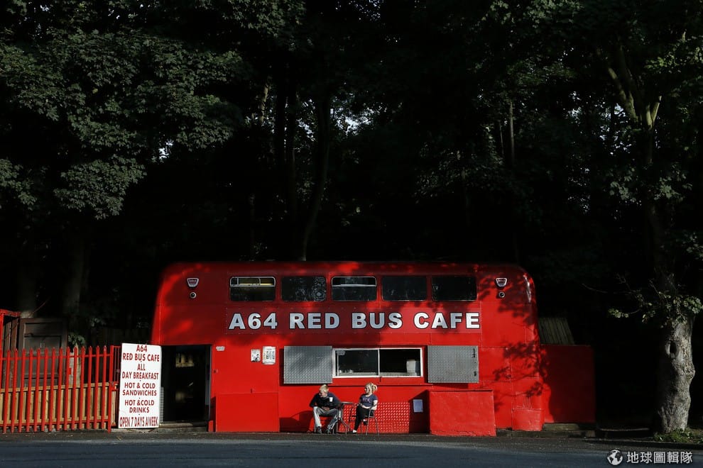 照片中是21歲的葛雷和22歲的薇琪坐在路旁等客人上門,他們身後是他們的雙層巴士咖啡店Red Bus Cafe,英國的主要道路旁有越來越多這樣用拖車、房車或改裝巴士改裝成的獨立餐車出現,他們不同於傳統休息站,這些路旁的餐車會提供便宜又道地的餐點來吸引民眾。