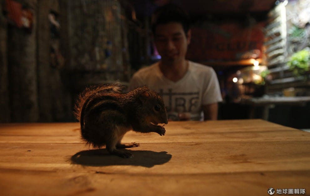 路透社店老闆正在餵食他店內的松鼠。