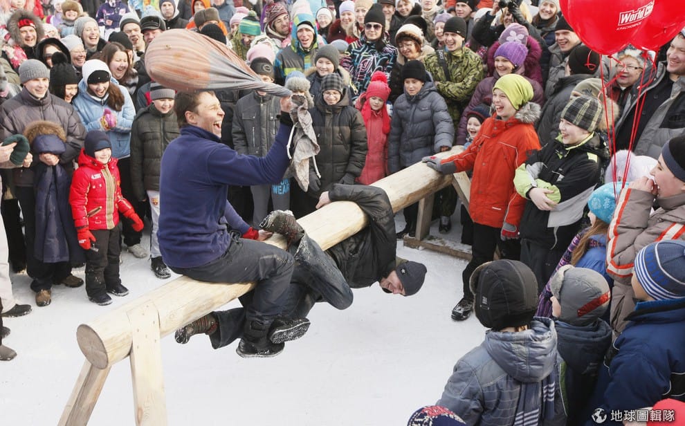俄國的克拉斯諾亞爾斯克(Krasnoyarsk)也加入國際枕頭戰,當地還想出讓人爬上木桿互毆,增加更多競賽趣味性。