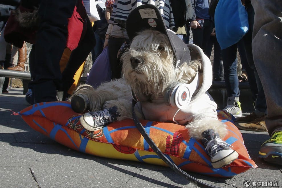 和主人一起參戰的狗狗也來到紐約的華盛頓廣場上