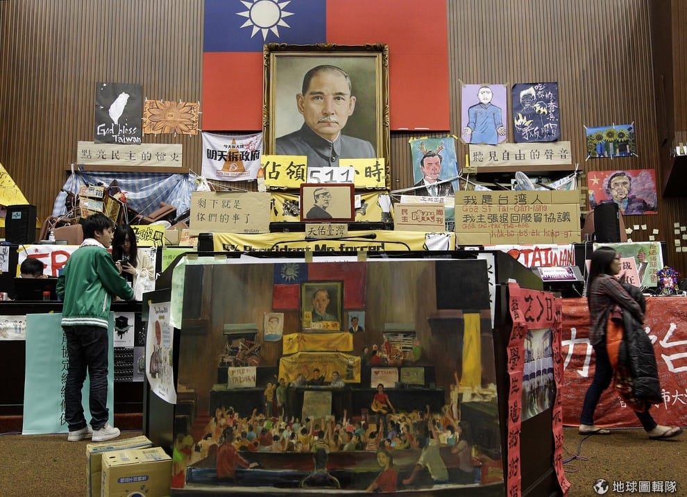 在立法院內,學生除了放上嘲諷總統馬英九的畫像外,也掛上許多曾在過去替台灣民主發聲的社運人士的肖像,學生們相信,現在是時候輪到他們來保護台灣的民主了。