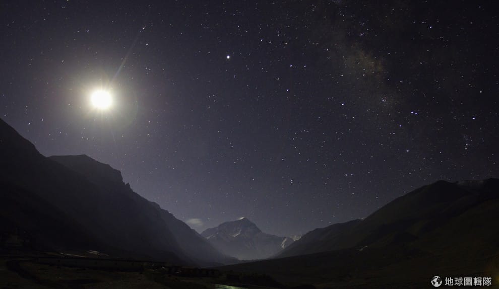 路透社在聖母峰上的夜晚,月光照亮群山。