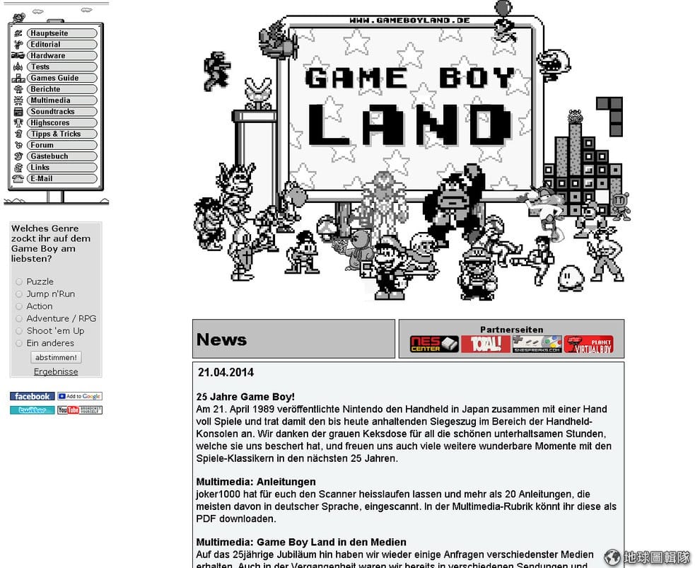 德語網站Gameboyland的網頁中可以看到讓人懷念的畫面。