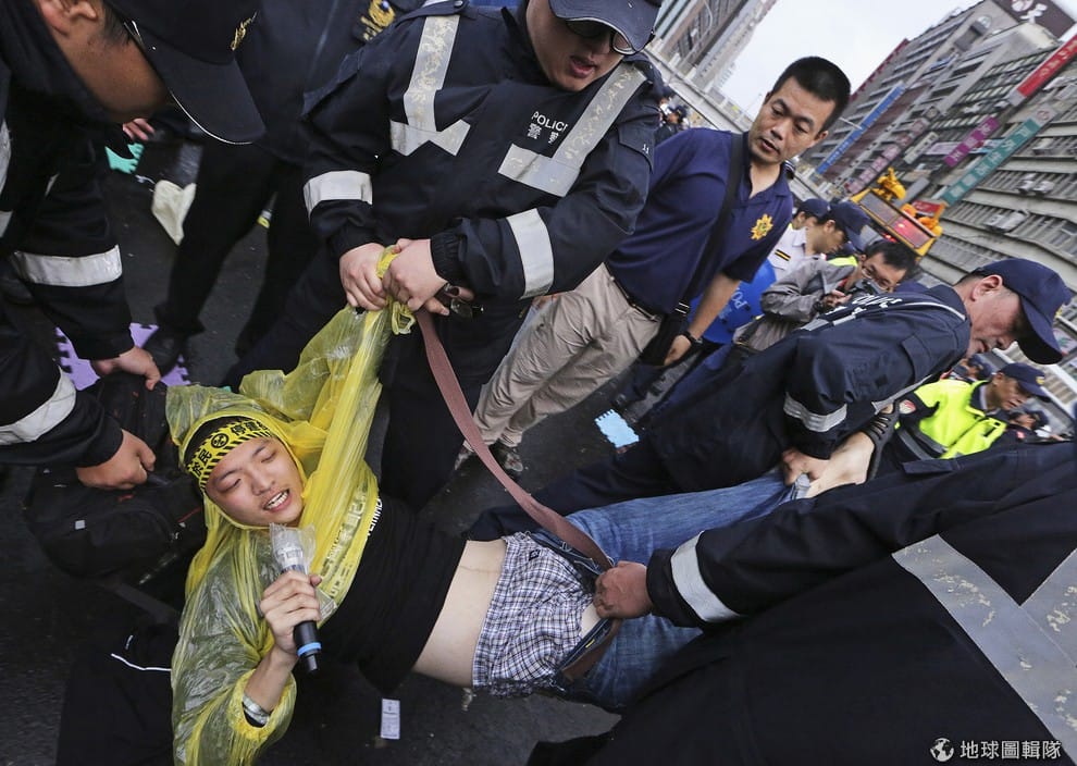 周末的抗議行動中可見台灣警方開始驅離民眾