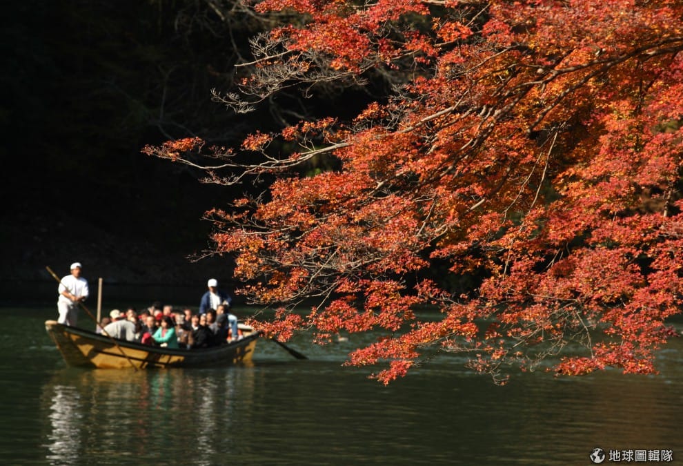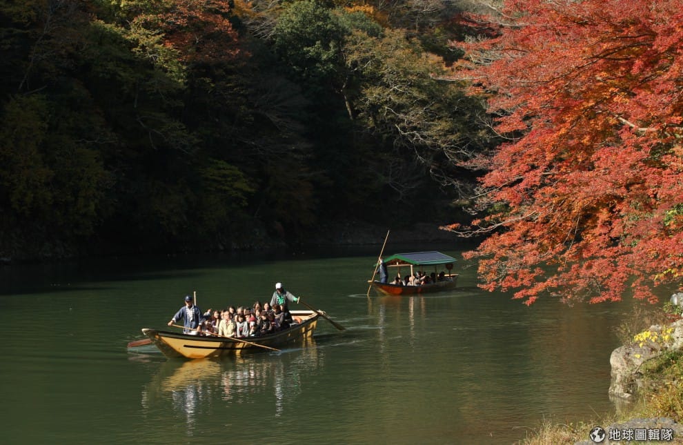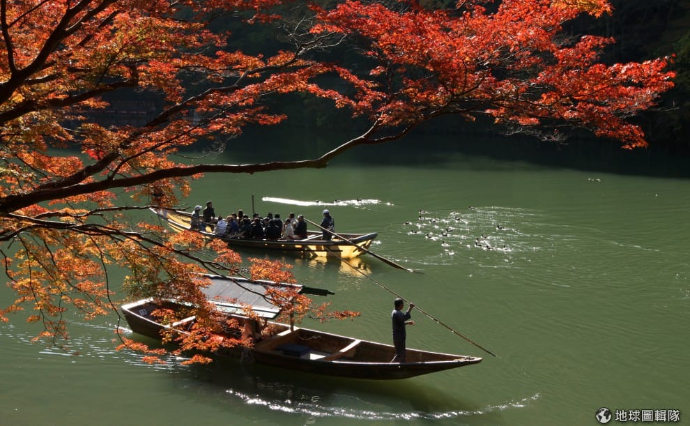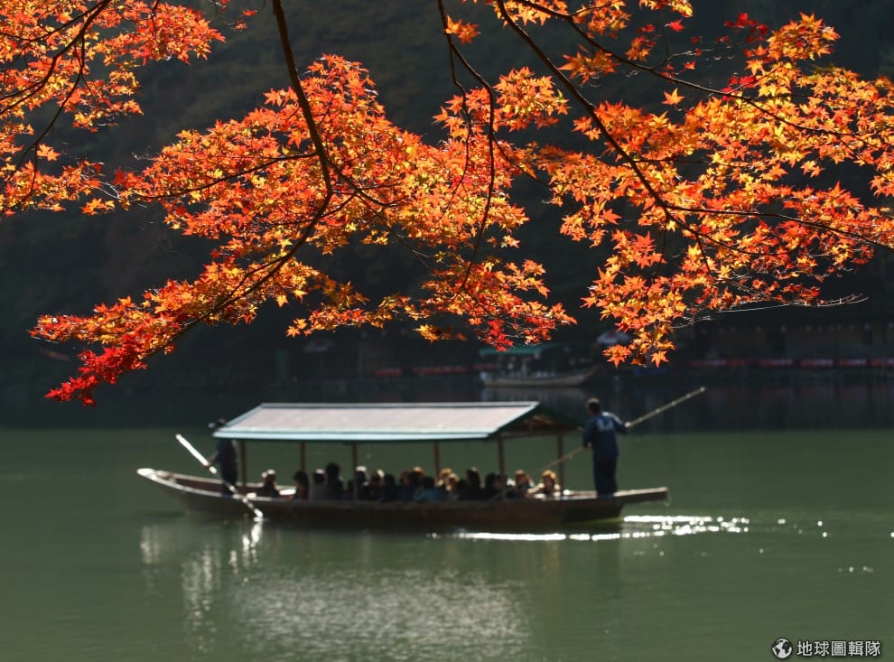 乘著渡船在桂川上緩緩而下,在這種氣氛下人應該都會忍不住附庸風雅起來吧?圖片來源:Buddhika Weerasinghe/Getty Images
