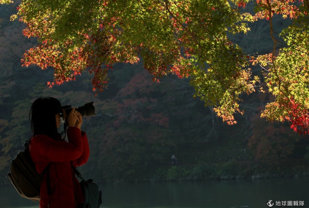 時間都走到了11月,但京都嵐山的楓紅還沒有到極大值,仍是可以看到許多努力「轉型」的綠黃色樹葉。圖片來源:Junko Kimura/Getty Images