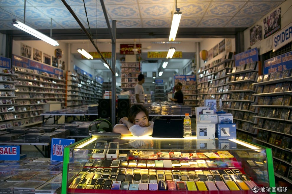 gettyimages一家兼賣手機和盜版DVD的店家,老闆正等著生意上門。圖片來源:Paula Bronstein/Getty Images