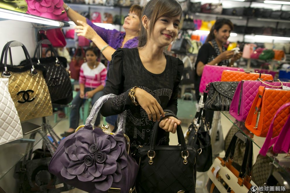 gettyimages漂亮的緬甸女孩,正在苦思要買哪個仿冒名牌包呢?圖片來源:Paula Bronstein/Getty Images