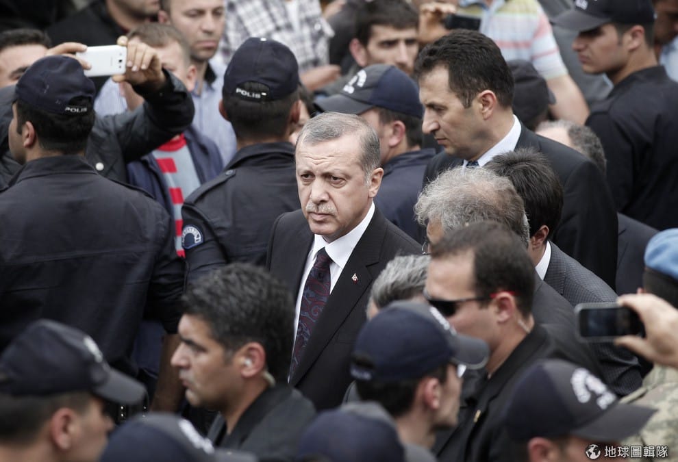 照片中央頭髮灰白的男人是土耳其總理埃爾多安