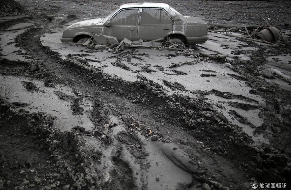 路透社土石泥流將車輛覆蓋